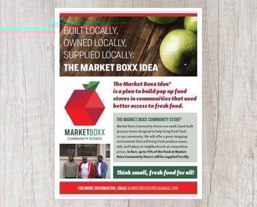 Crafted a new logo for Marketboxx Community Stores, a community-empowering organization focused on teaching youth sustainable business (and building!) practices. We worked together with Marketboxx’s founder on developing brand guidelines, then put together some fresh flyers and posters.