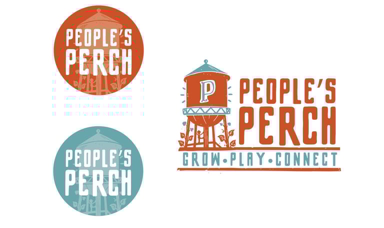 We chose the colors to represent the rich history of the Perch’s historic water tower-based location — orange for rust and blue for water — added flourishes of plants & people to include themes of growth & play, and conjured up a concise, fitting tagline.