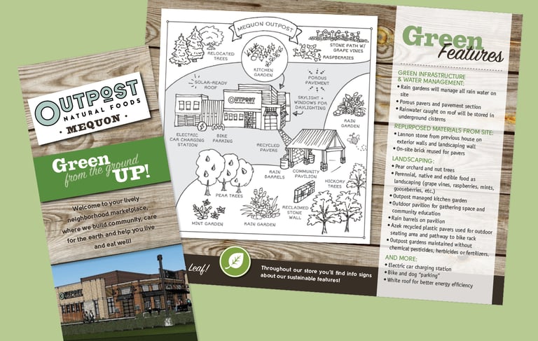 Designed and illustrated a brochure/sustainability guide to Outpost’s state-of-the-art, LEED Certified new store location.