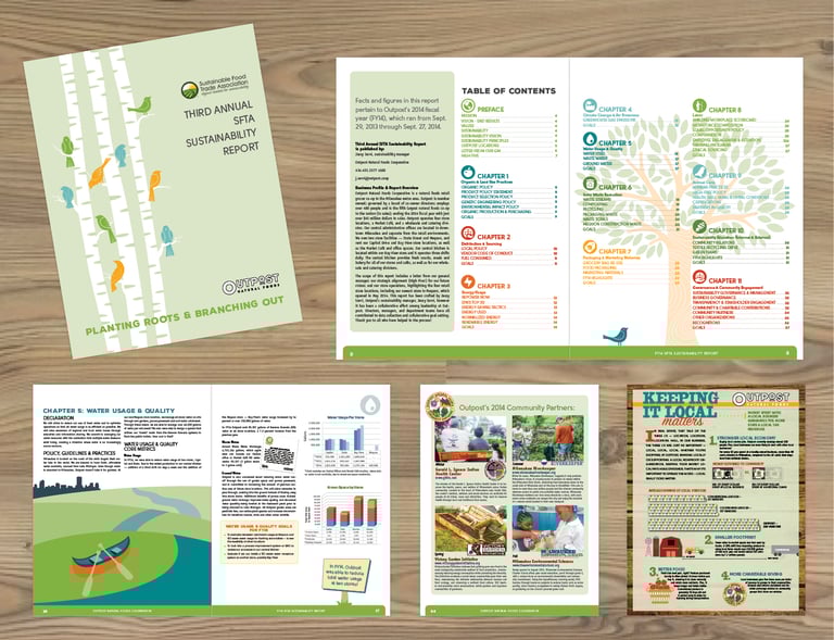 Took the lead on crafting Outpost’s 40-page Sustainability Report, incorporating infographics, graphs, icons, illustrations, and graphics from events and milestones throughout the year.